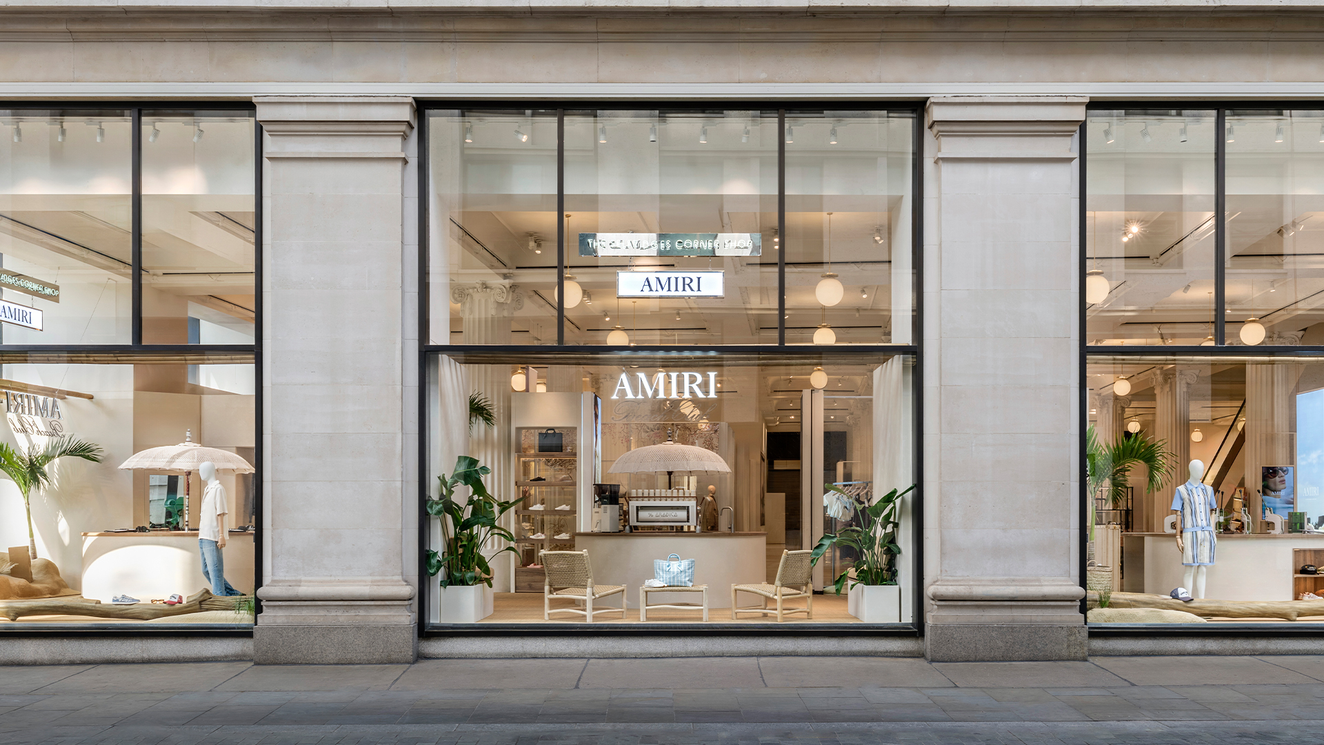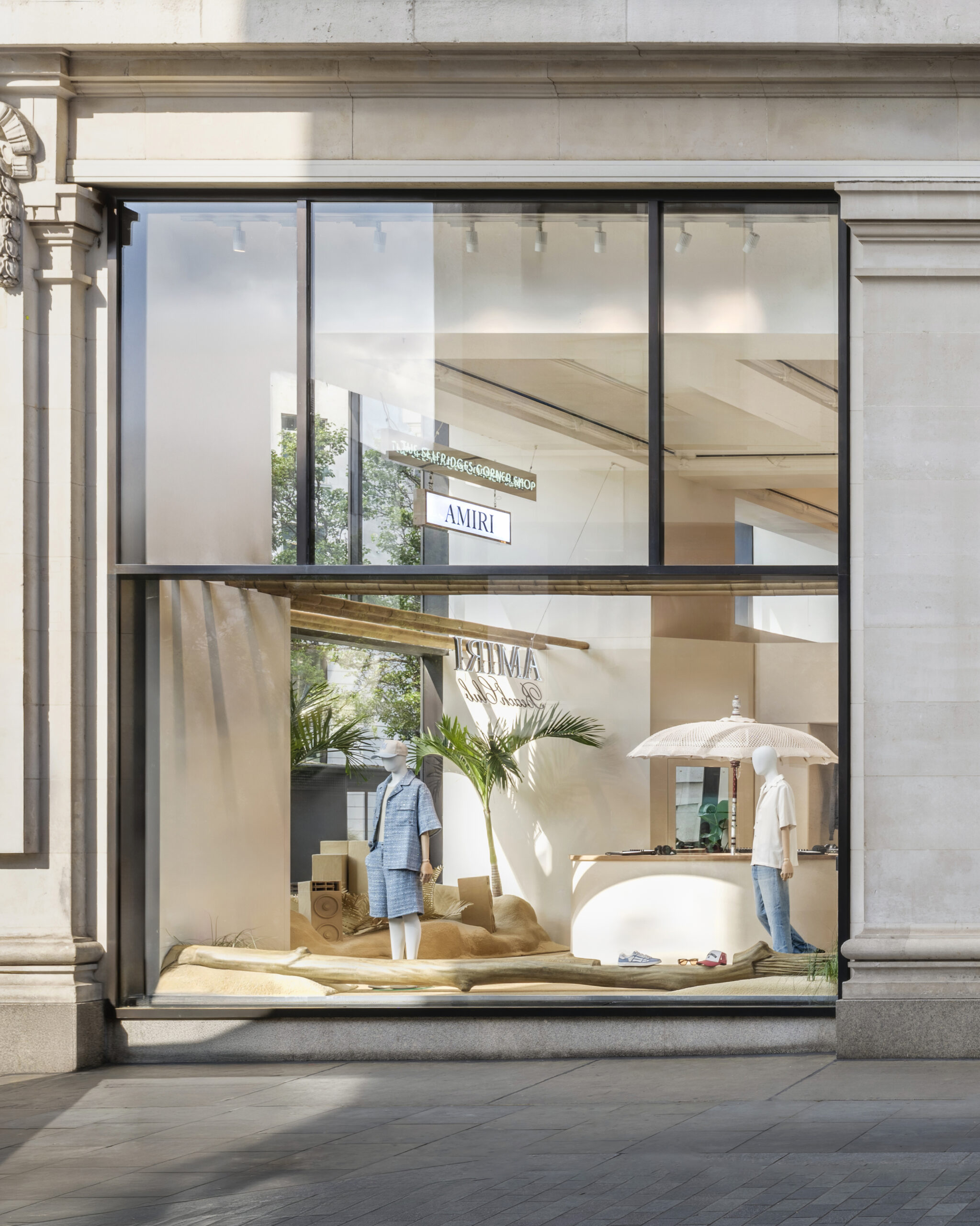 Luxury Los Angeles label AMIRI has taken over The Corner Shop at Selfridges London, transforming the revolving retail space into a sun-soaked escape: the AMIRI Beach Club.