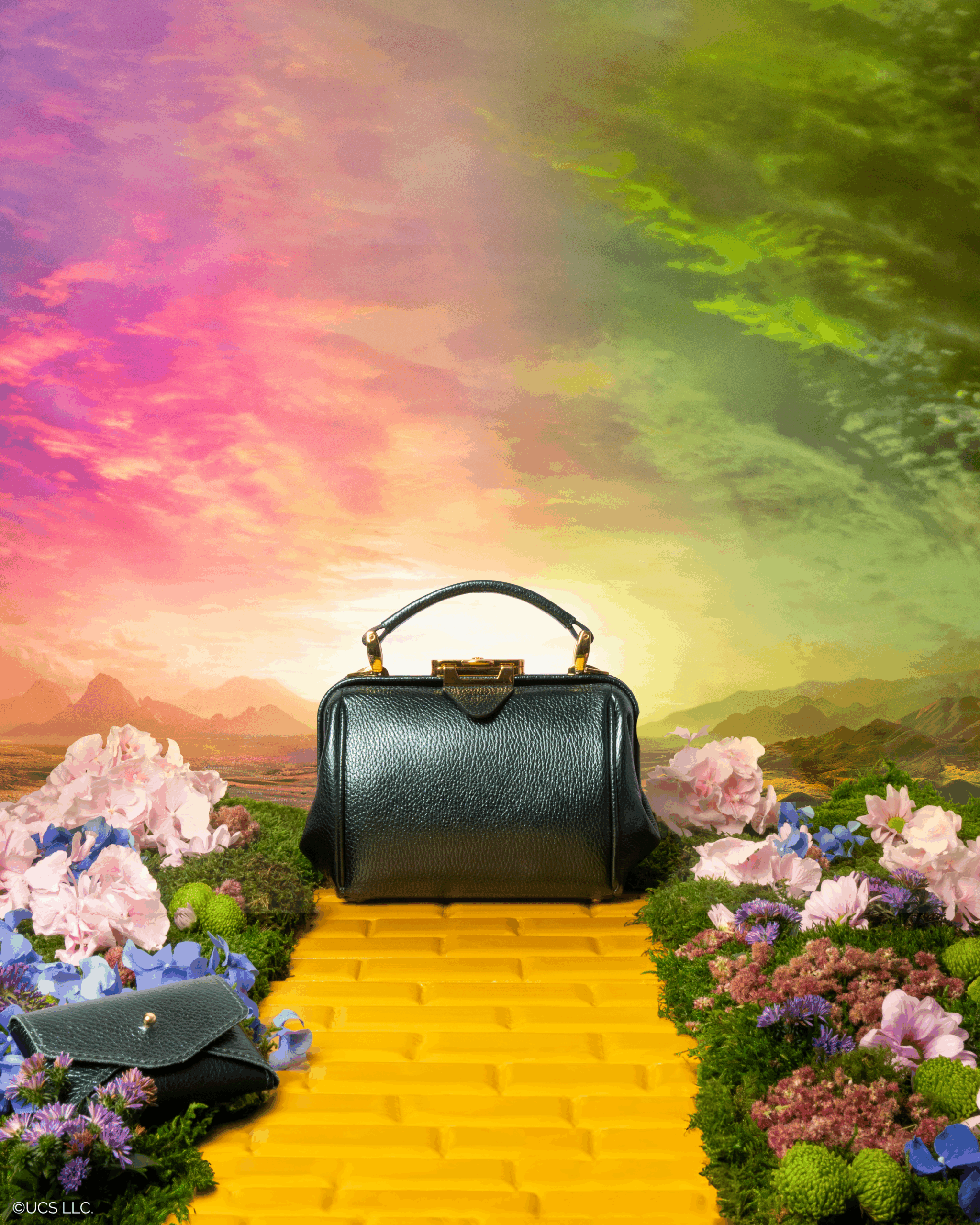 Rounding out the range, the Emerald City edit gives the brand’s classic silhouettes, such as The Mini Sophie, which has a shimmering dark-green makeover fit for a night out in Oz. Meanwhile, the Friendship Capsule symbolises the film’s heart, uniting Glinda’s pink and Elphaba’s green in harmonious colour-blocked designs.
