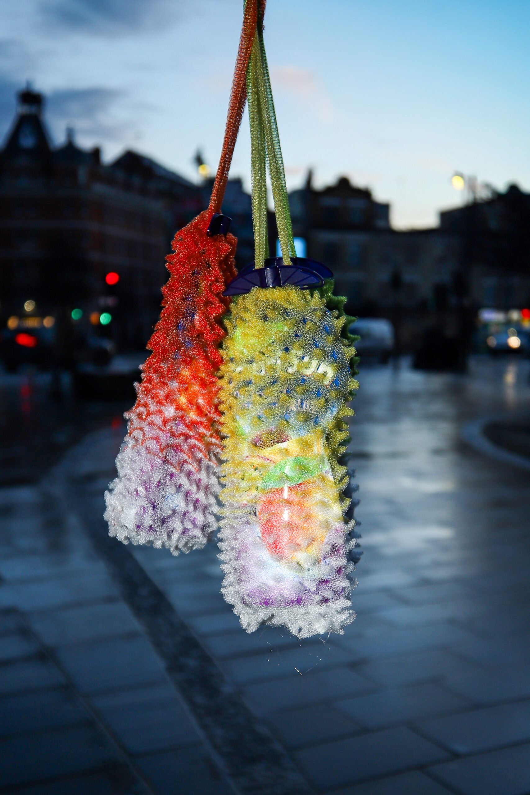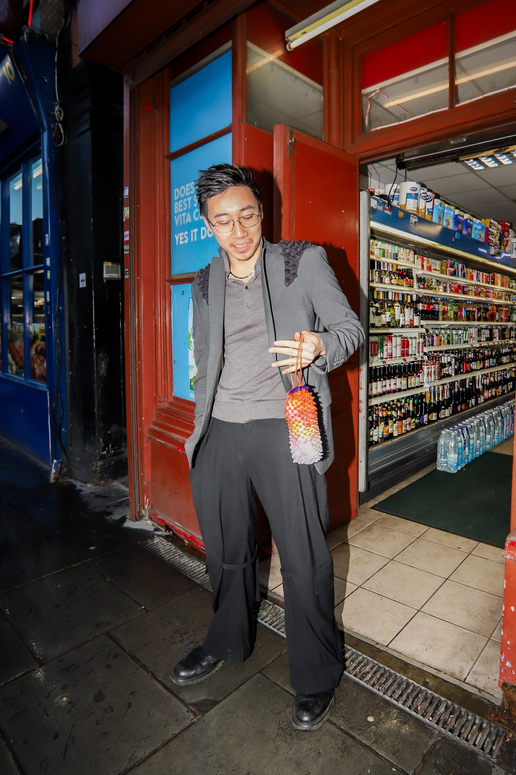 The design reflects the “pure street energy” of South Asian night markets, where drinks in simple plastic bags with a straw are part of the culture. Lo flips that reference into a high fashion accessory through his signature codes: spikey texture, punchy silhouette and “serious camera impact”.