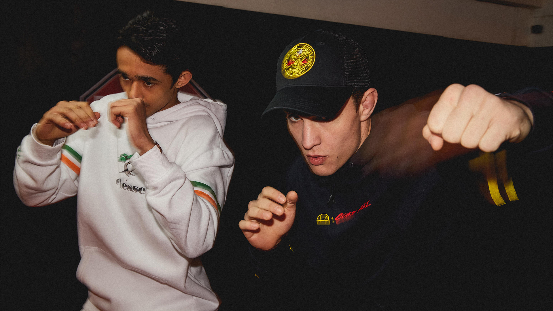 Launching on Thursday 3 February, the Ellesse collection takes inspiration from the show’s rival dojo houses featuring team hoodies, sweatshirts, long and short sleeve t-shirts, tracksuit tops and bottoms with contrasting Cobra Kai or Miyagi-Do colour schemes and branding.