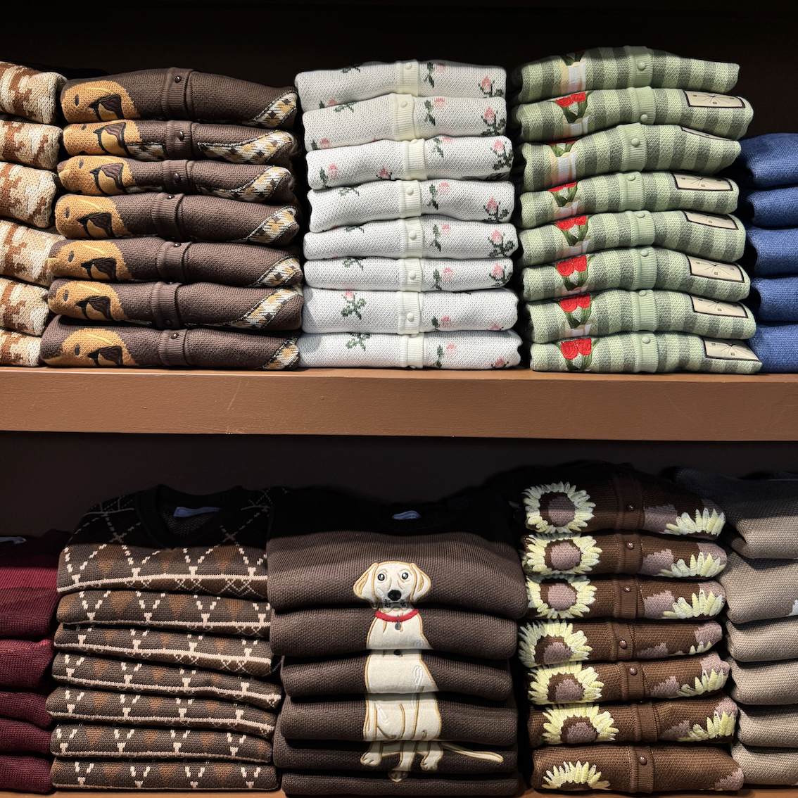 Stepping through the doors, visitors find themselves in a space designed to evoke the excitement, cosiness and charm of Christmases past. The store is dressed with vintage equestrian photographs, an old-school television playing Home Alone on VHS and a working model train set weaving through displays. Nestled among the nostalgic tableaux are the brand’s signature knits and bestselling pieces.