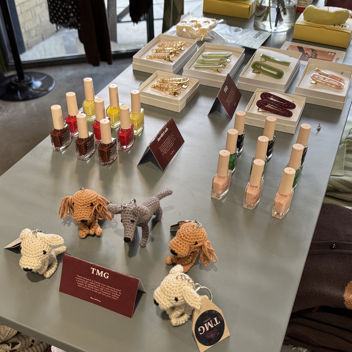 For the first time, the brand is also offering a curated selection of exclusive gifts from independent makers, expanding beyond its own ready-to-wear collection. The edit includes hand-poured candles from Nata Concept, glittering clips from Feo London, glossy polishes from Shoreditch Nails, playful scrunchies from Doodle Buz and hand-crocheted dog charms by TMG.