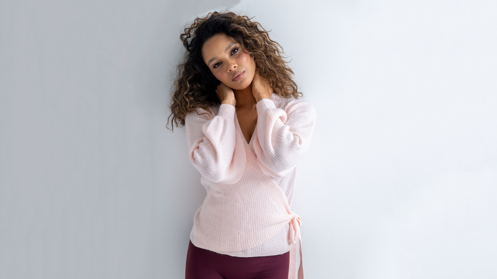 Collection highlights include the ‘Cosy Knit Wrap Cardigan’ at £47, inspired by Pour Moi’s ‘Elle Wrap Cardigan’ but taken up a notch with a more premium, ultra-soft ribbed knit, and the ‘Cosy Knit Dress’ at £55, with quarter-zip collar. There’s also flared leggings, wide leg joggers and a ‘Hidden Support T-shirt’.