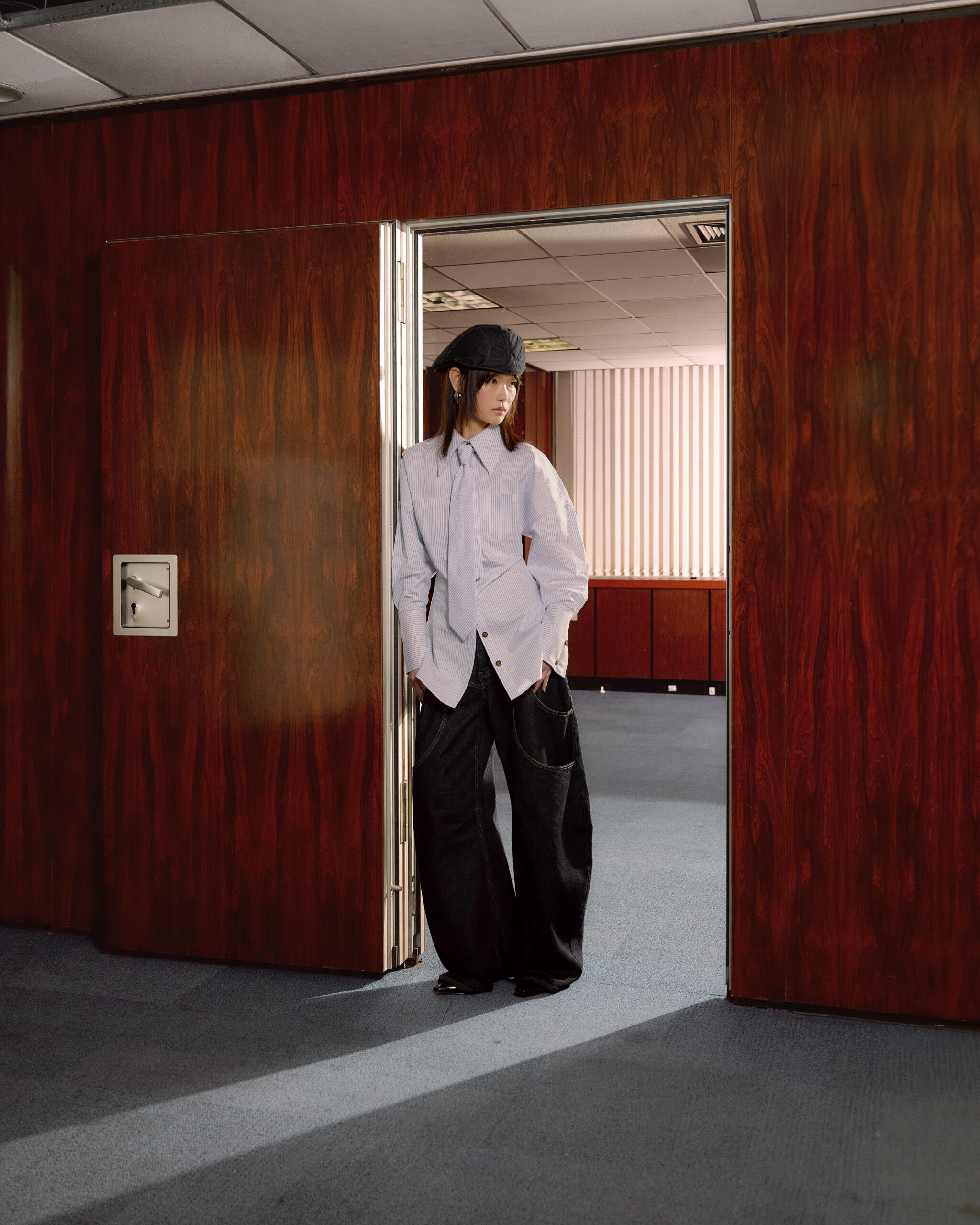At the heart of the collection is Coker’s precision tailoring, reinterpreted across modern staples and statement pieces, such as denim reimagined into coordinated sets, including cropped jackets, multi-pocket jeans, and mini and maxi skirts featuring Coker’s signature pleating.