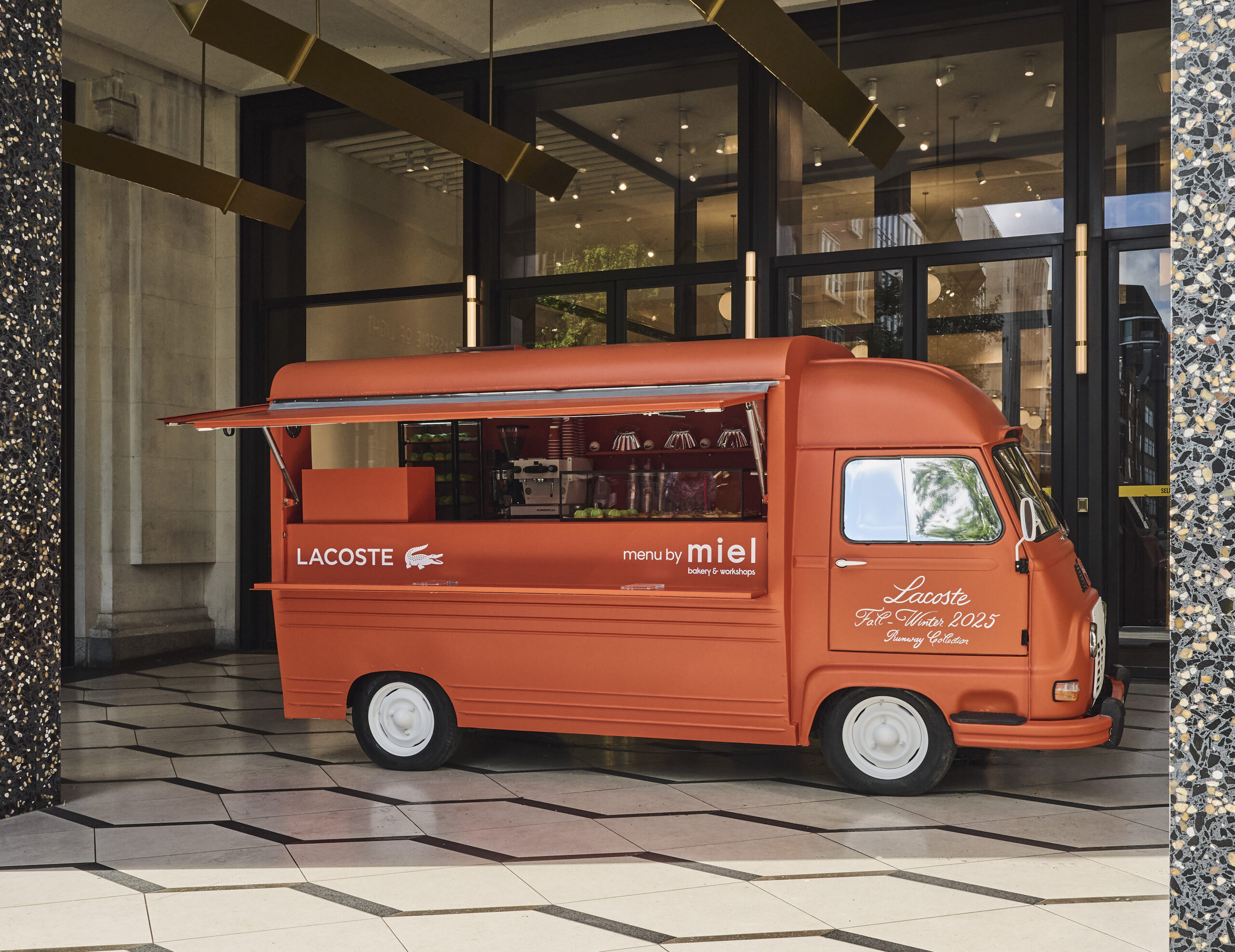 Lacoste has unveiled a tennis-inspired pop-up café van at Selfridges’ Duke Street Canopy, named ‘Le Lacoste Serve’, accompanied with an accessories hall pop-up featuring the brand’s new ‘Lenglen’ bag range.