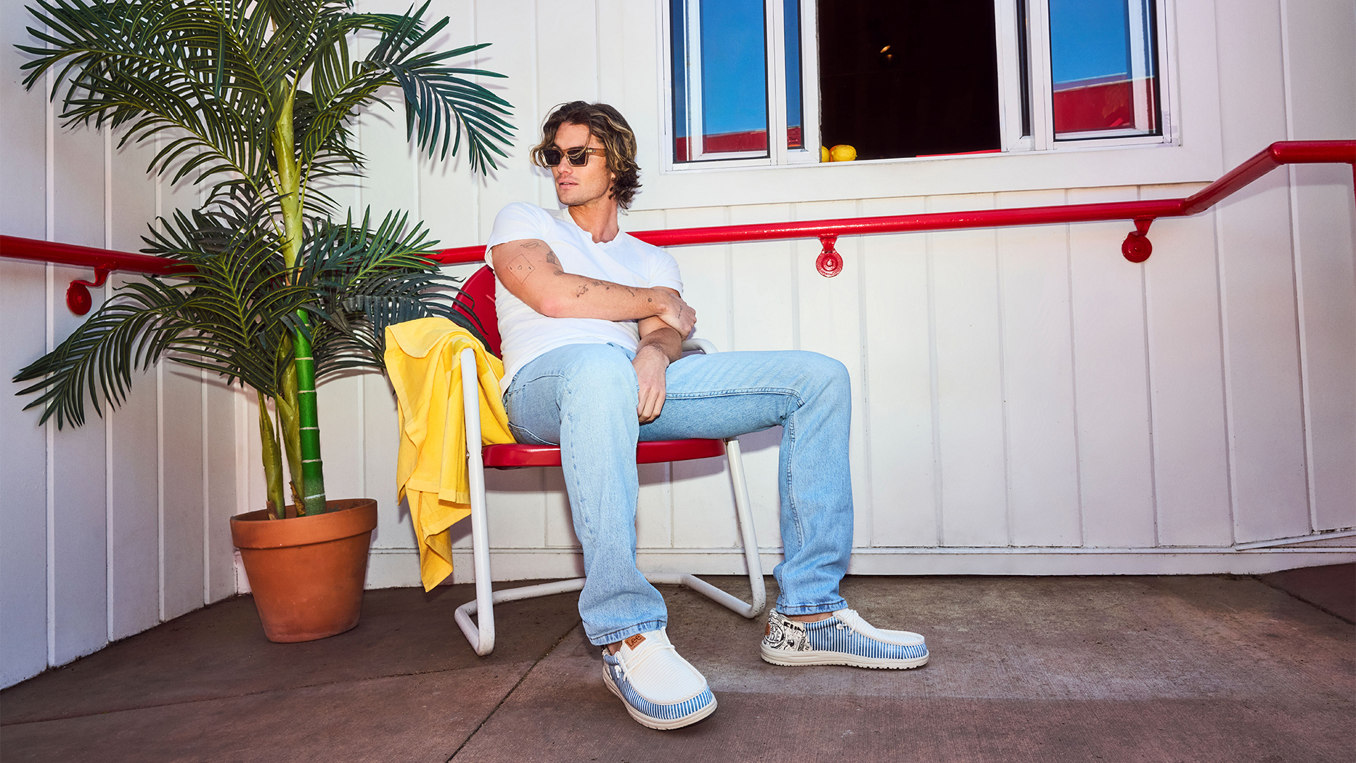 Heritage US denim brand Lee has partnered with Crocs-owned footwear brand HeyDude on a new footwear line, with American actor Chase Stokes, star of Netflix drama series ‘Outer Banks’, fronting the campaign.