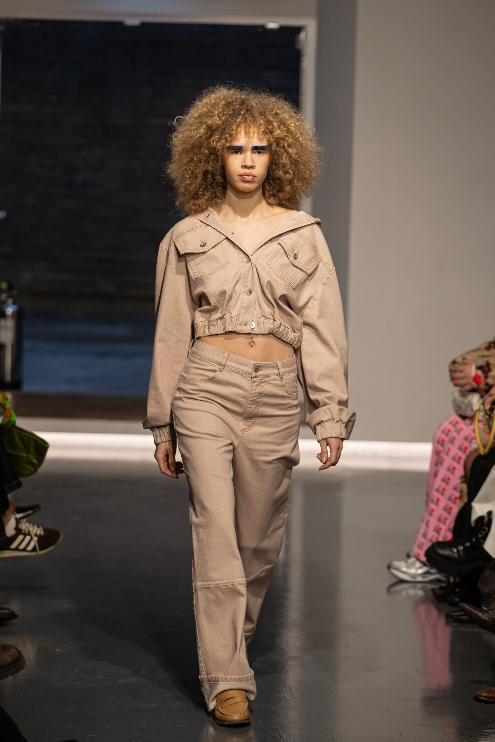 The show previewed an 18-piece capsule for Topshop, launching in spring 2026. Inspired by Coker’s London upbringing, the collection features expert tailoring, sculptural denim, directional knitwear, sharp blazers, pleated trousers and statement jumpsuits. All runway footwear was provided by luxury brand Manolo Blahnik.