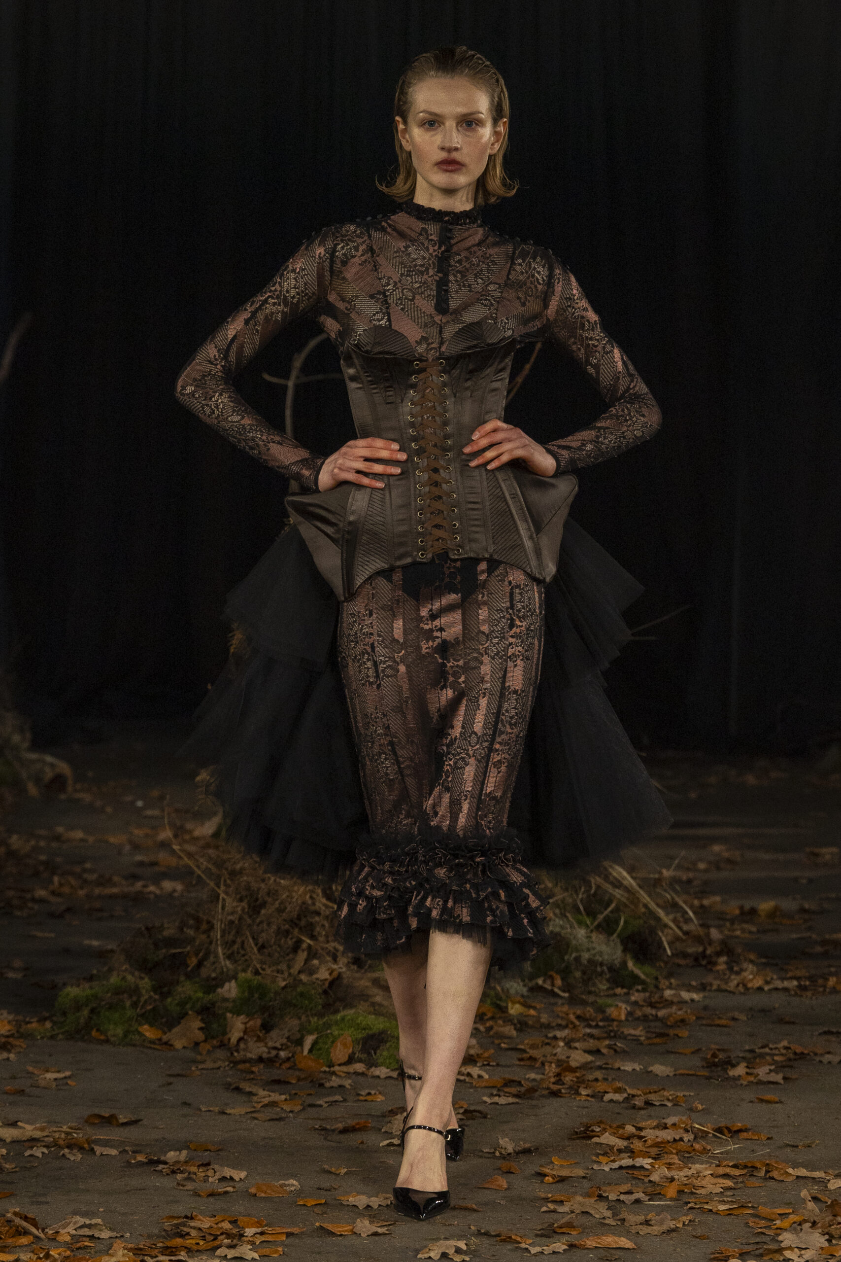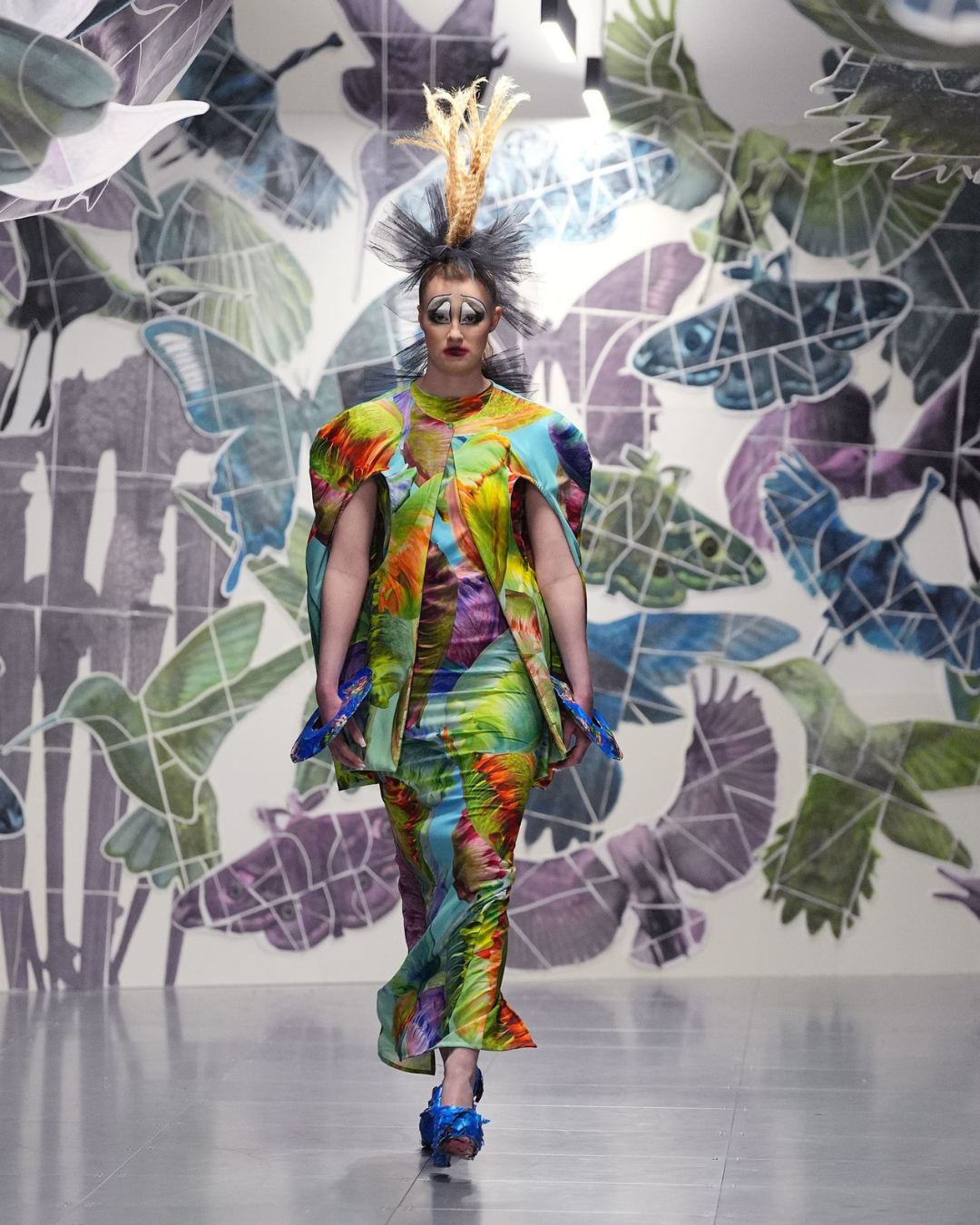The collection itself focused on reconnecting fashion with the natural world, using plant-based textiles, recycled materials and traditional techniques. Celebrities including Dame Prue Leith and stylist Jo Wood walked the catwalk wearing garments made from holly, nettles, butterbur, wood clippings and recycled aluminium.