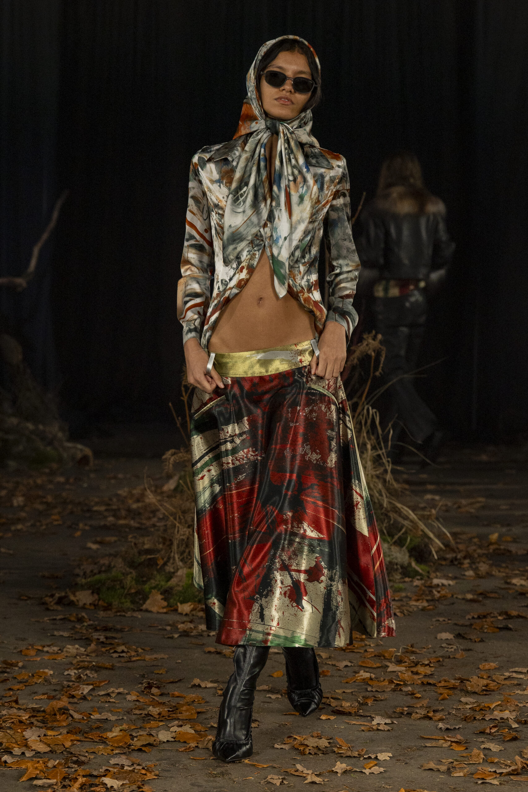 Elsewhere, technicolour stole the spotlight on the runway, with bold, clashing tones softened by unexpected harmony, while distressed textures and punctured fabrics delivered the punk edge Vin + Omi are known for - reinforcing that sustainability need not be subdued.