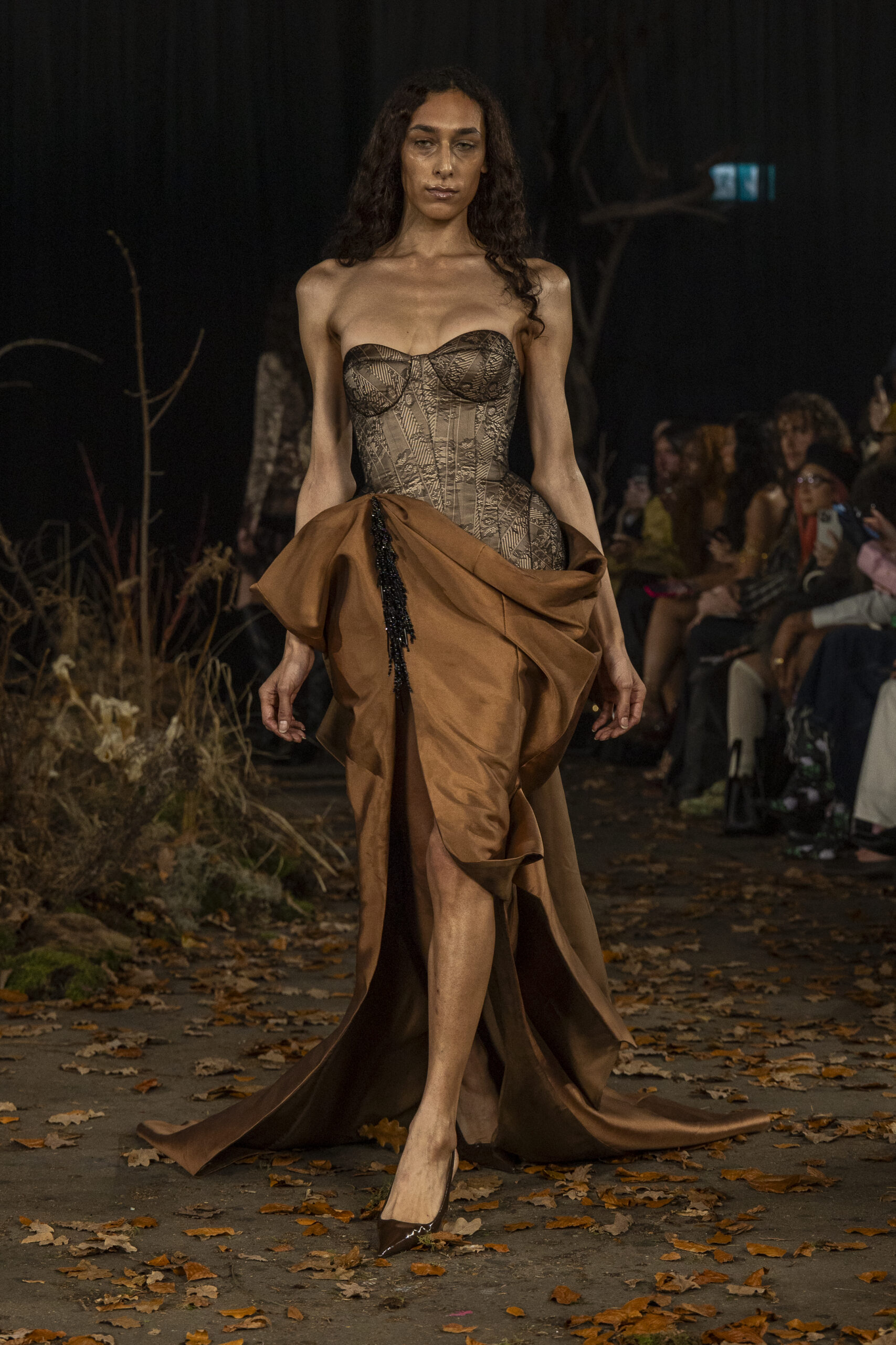 Coker, who launched her label after graduating from Central Saint Martins in 2018, is part of a new generation of designers reshaping London’s creative landscape. Known for exploring diasporic Black identity through largely unisex silhouettes rooted in deconstruction and sustainability, the British-Nigerian designer once again blended meticulous craftsmanship with contemporary storytelling.