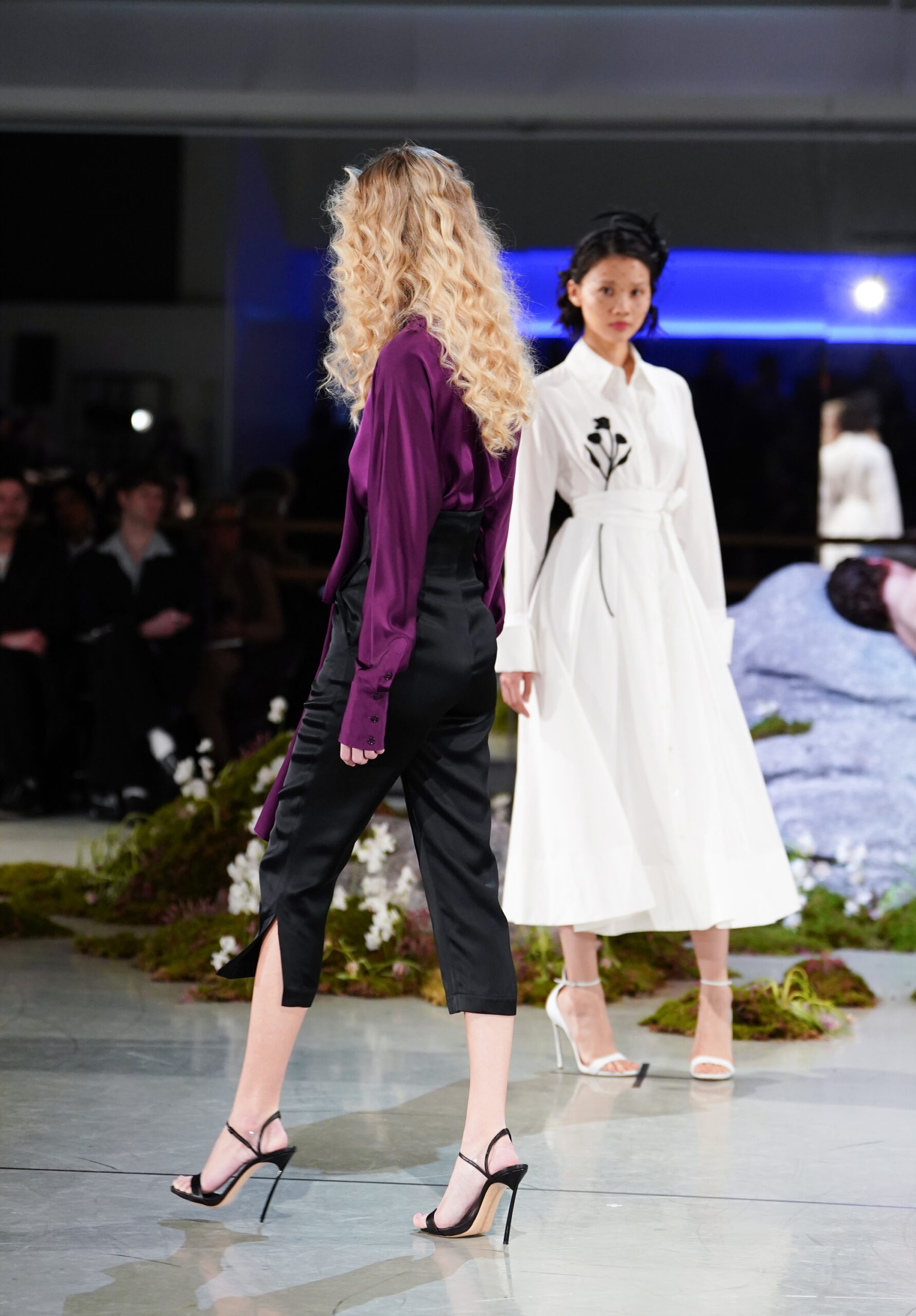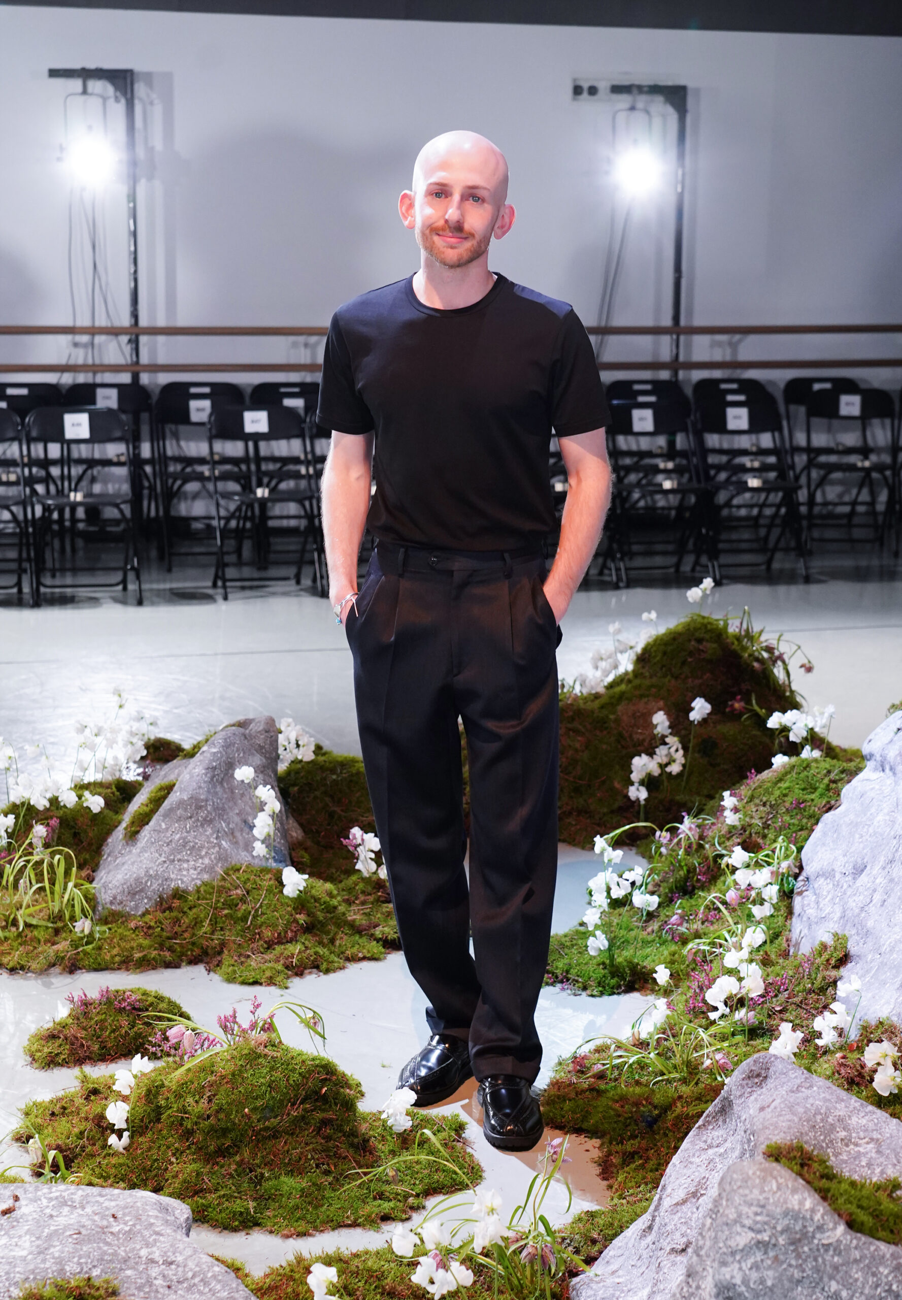 The set reinforced that narrative. Held at Rambert – the legendary dance academy – in London, dancer Jonathon Luke Baker reclined on a rock surrounded by moss and sprouting flowers, dressed in ballet tights, as models strode past him.