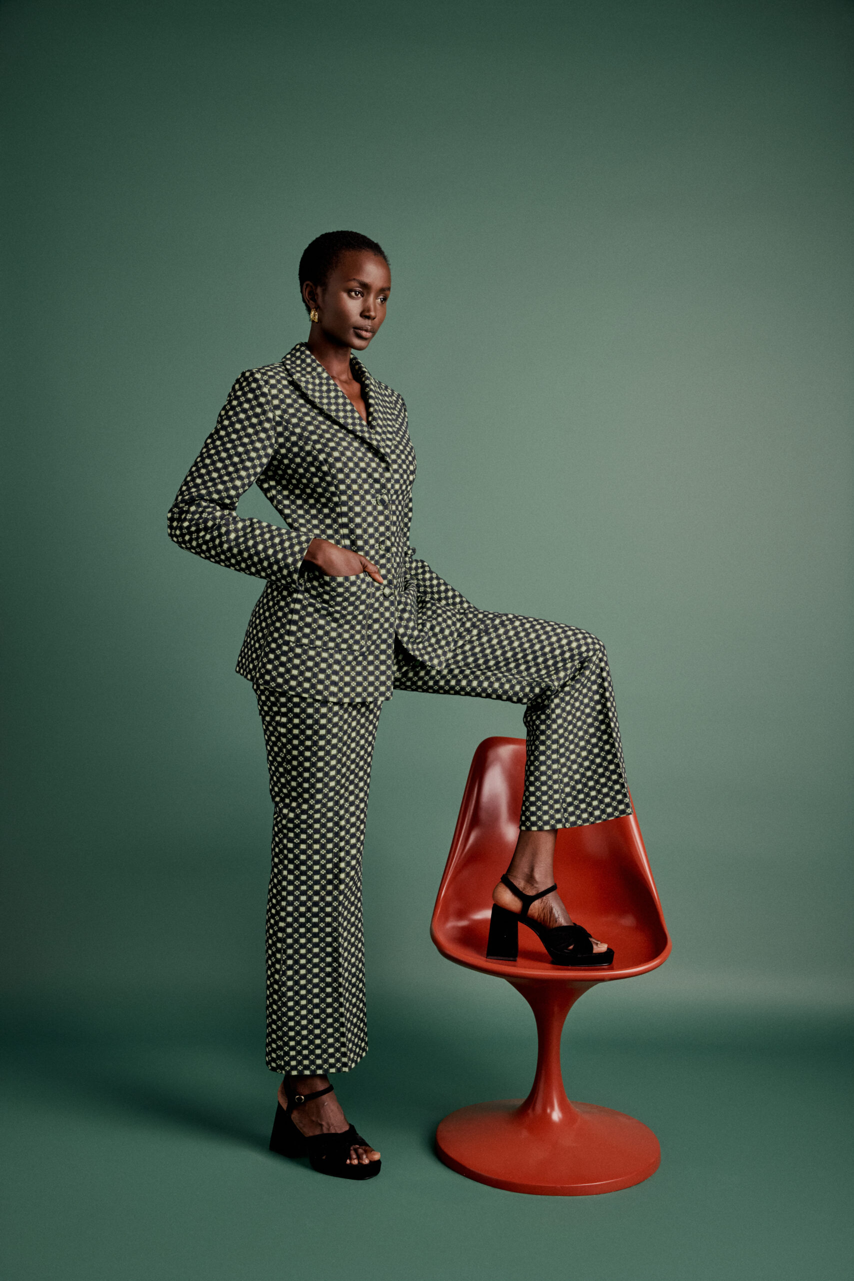Tailoring takes centre stage, with miniskirts and wide-leg trousers paired with sharply cut blazers, designed with nipped-in waists and premium linings.