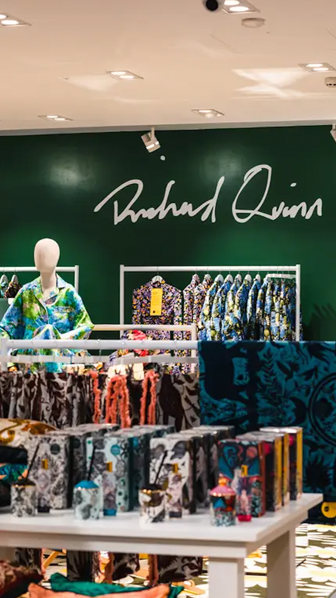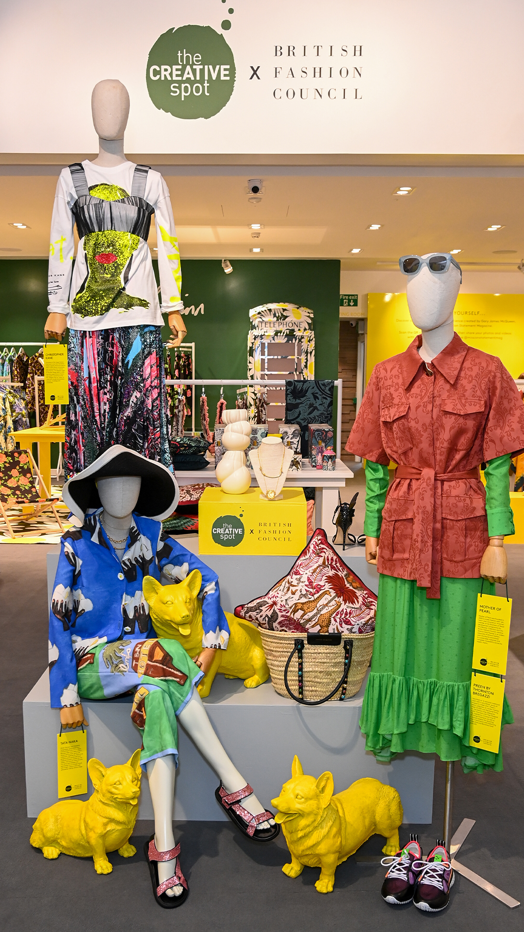 The British Fashion Council and The Creative Spot have collaborated to open a pop-up boutique, designed by Richard Quinn, at outlet shopping centre Bicester Village in Oxfordshire to coincide with the Queen’s Platinum Jubilee celebrations.