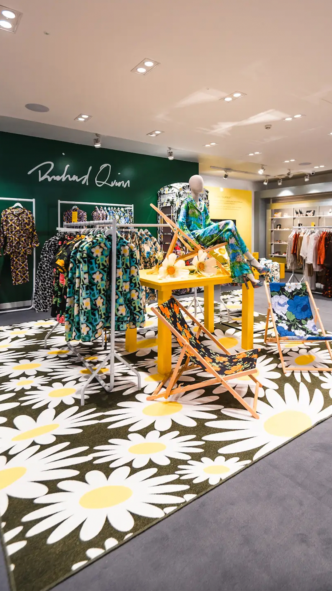 Quinn, who was the recipient of the inaugural Queen Elizabeth II Award for British Design, has given the pop-up a daisy print makeover, and has designed exclusive pieces including floral print blouses, dresses, T-shirts, bucket hats and even a deck chair, again continuing the floral print theme.