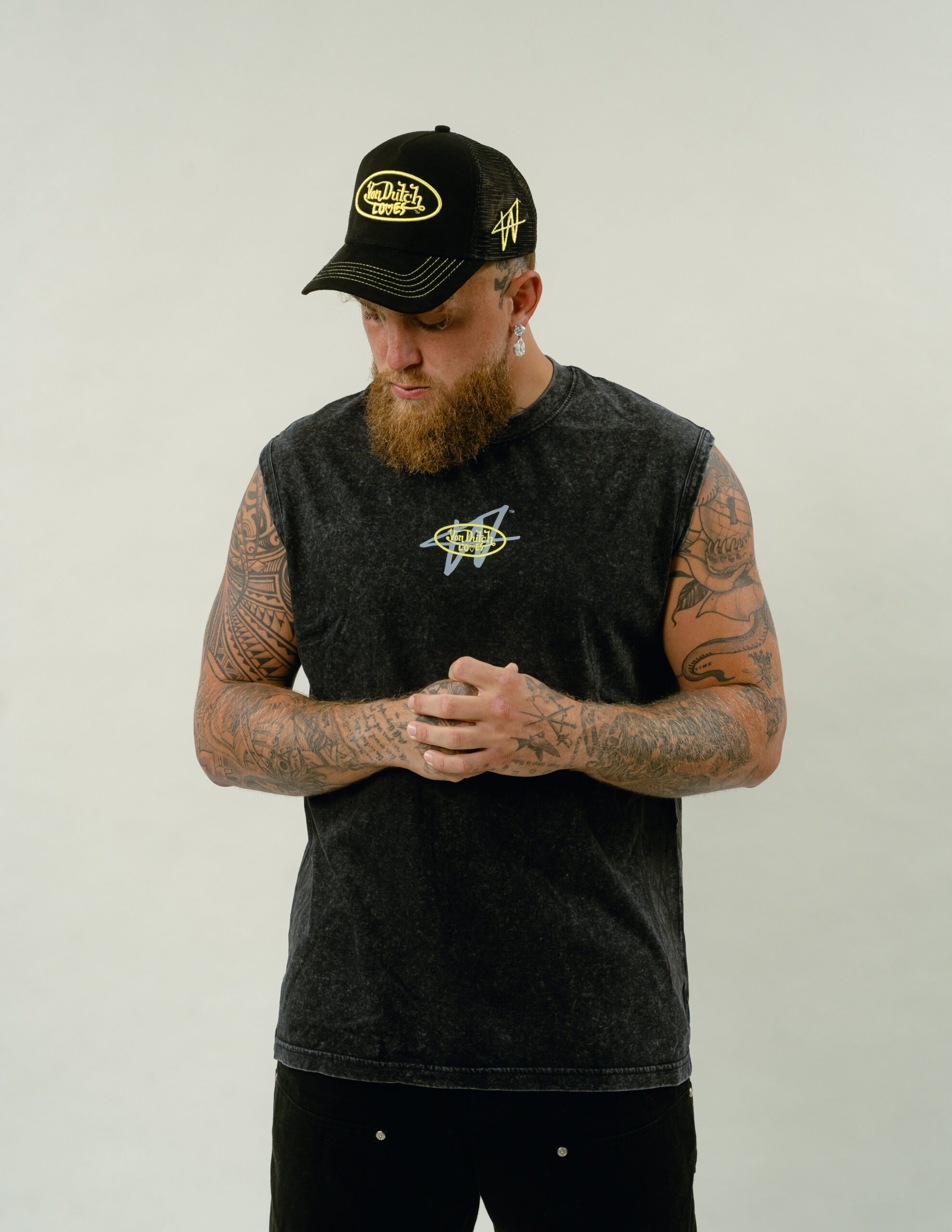 “The black muscle tee with pinstriping is a nod to both boxing aesthetics and street style - athletic, but not gym wear. Jake’s boldness and Von Dutch’s history of pushing boundaries naturally fit together. This collection reflects that intersection of heritage and hype, stripped down to the essentials.”
